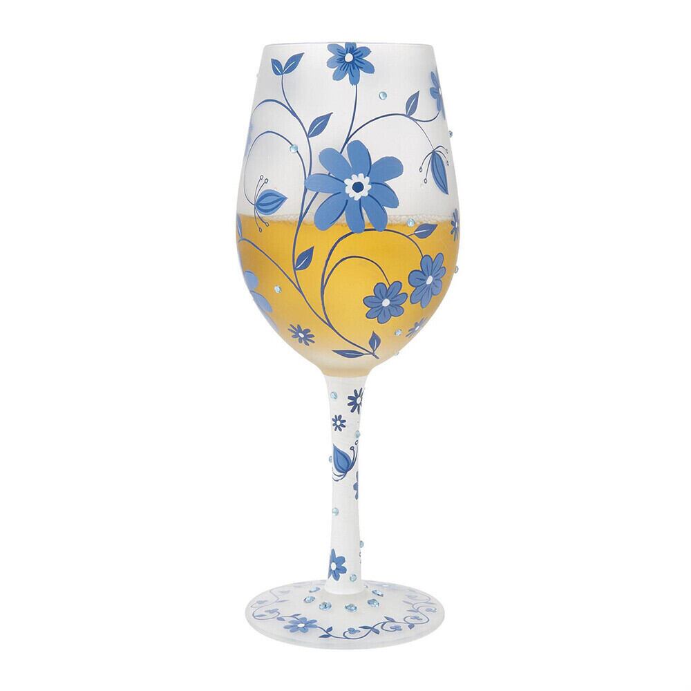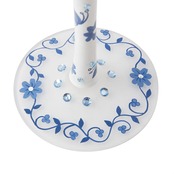 すりガラスに美しいブルーの花が散りばめられたように描かれたワイングラスになっています。