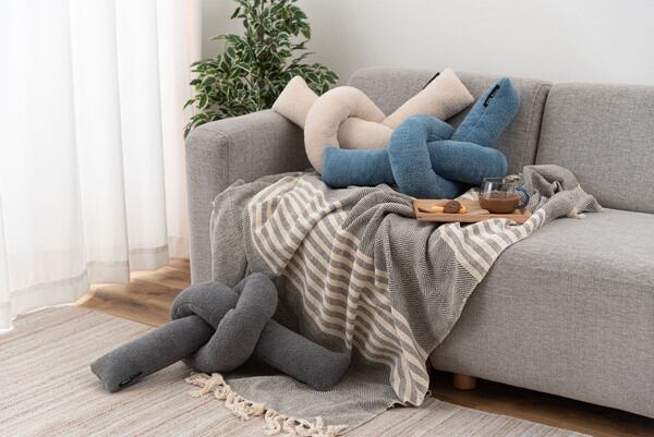 もちもち触感のブークレ生地を使用した、ロープクッション。触り心地の良い感触と、インテリア性のあるデザインが魅力的なアイテムです。クッションとしての使いやすさはもちろん、置いておくだけでも雰囲気が出ます。