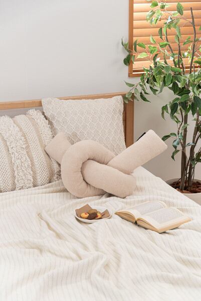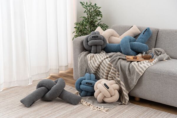 もちもち触感のブークレ生地を使用した、ロープクッション。触り心地の良い感触と、インテリア性のあるデザインが魅力的なアイテムです。クッションとしての使いやすさはもちろん、置いておくだけでも雰囲気が出ます。