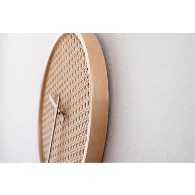 それぞれの素材が持つ美しさを活かしたウォールクロック。やさしい風合いのラタン調デザイン、親しみある天然木フレーム、洗練されたメタルの3アイテムをラインナップ。空間になじみながらも、しっかりとした存在感でインテリアを引き立ててくれます。針の音が気にならない静音タイプなので、書斎や寝室にもおすすめです。