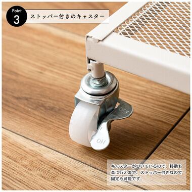 ●キャスター付きで移動も楽々。ストッパーも付いているので固定も可能。