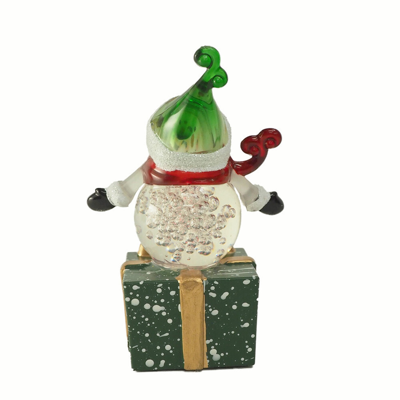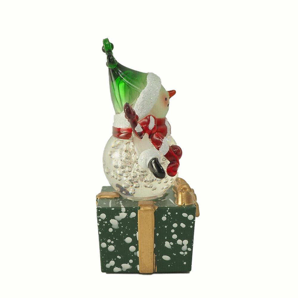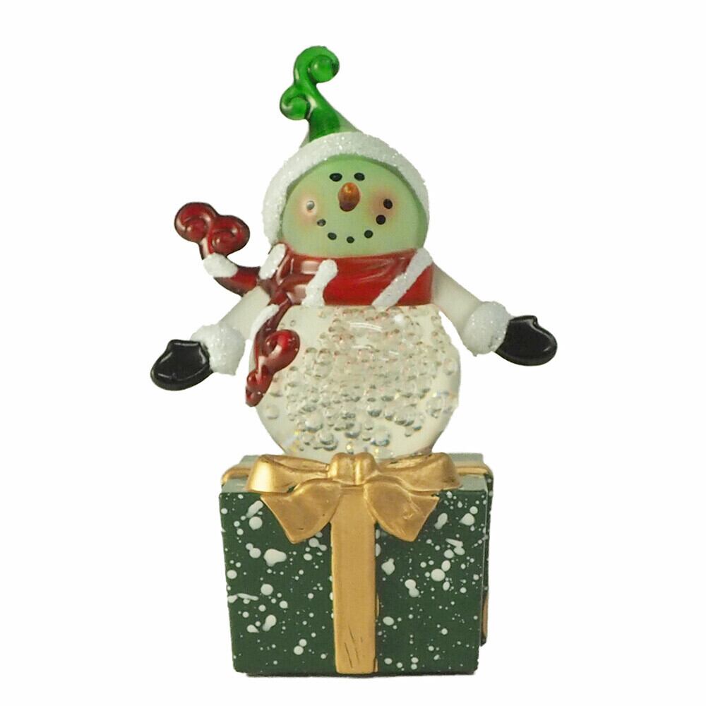 プレゼントボックスの上にいるスノーマンがLEDの光で幻想的に光るクリスマスデコレーションです。