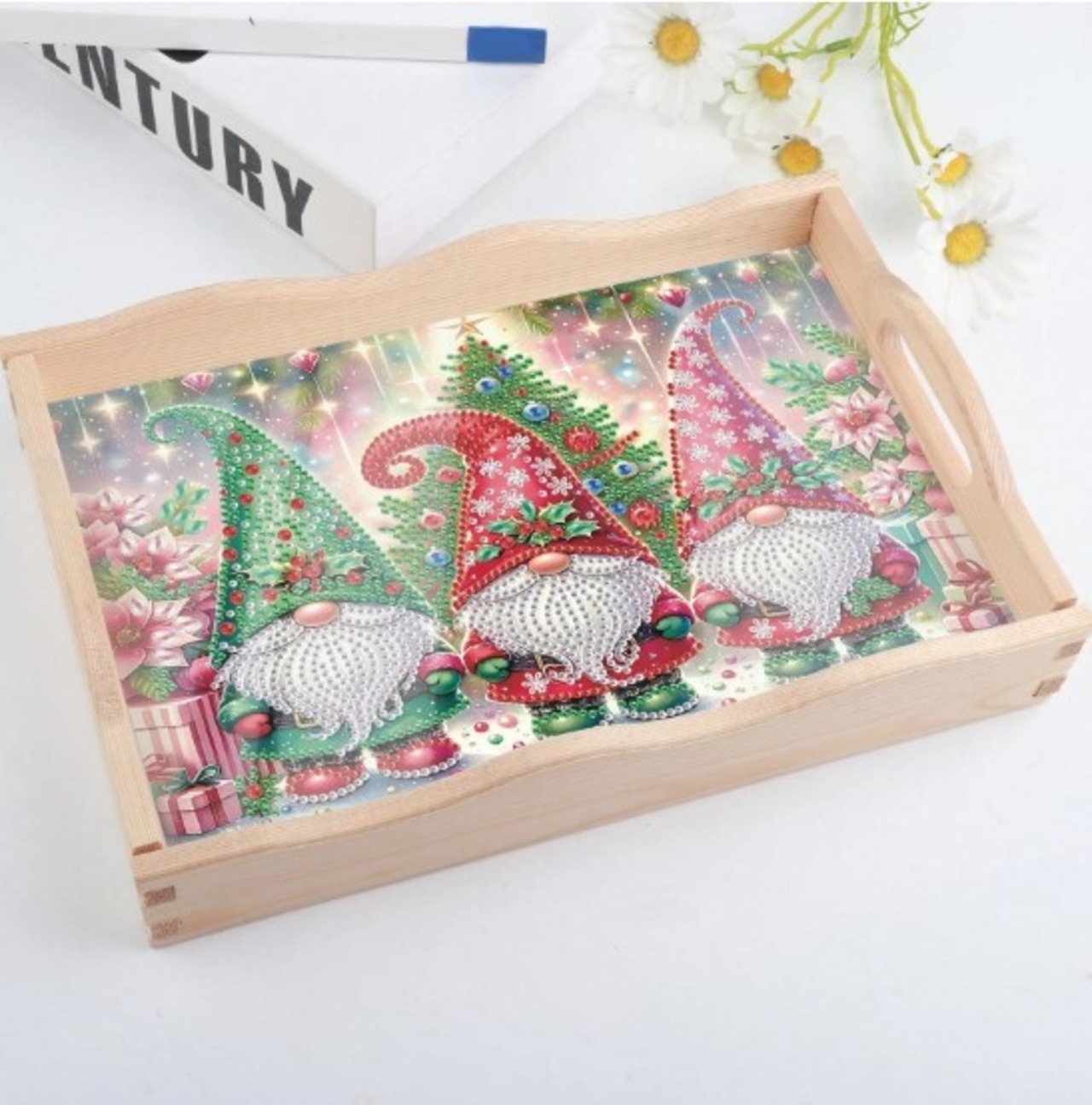 1 Set DIY Diamond Painting Tray Kit - Christmas Gnome Wooden