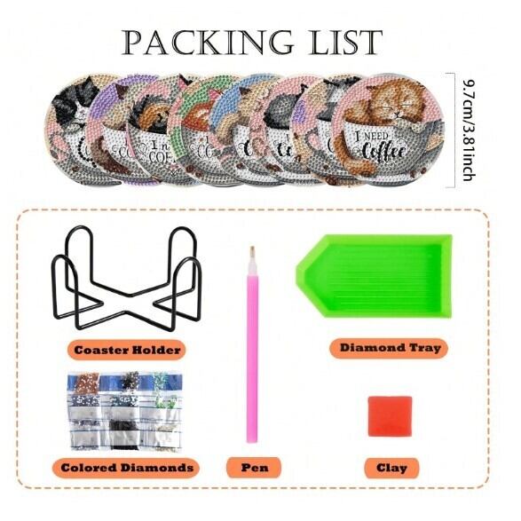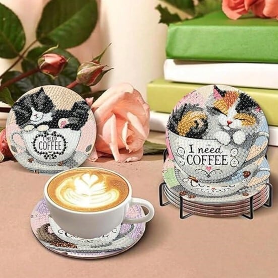 Cat Diamond Art Coaster Set