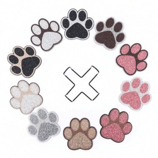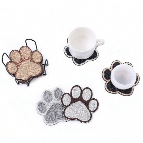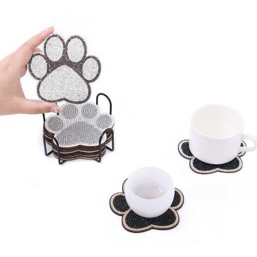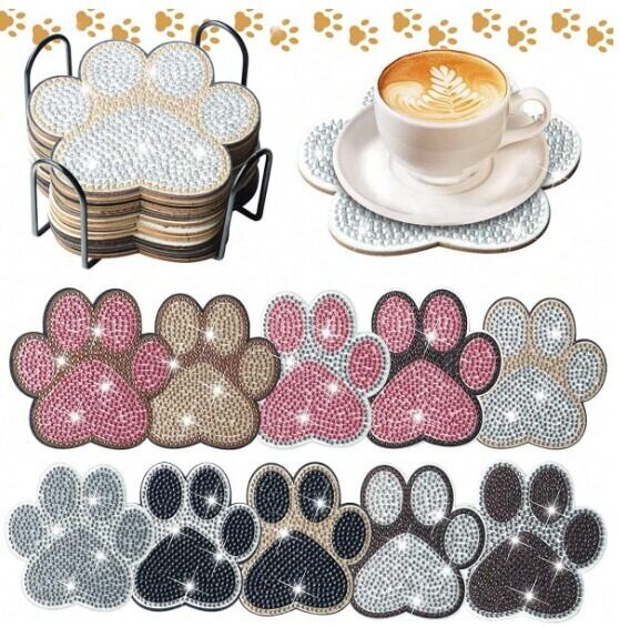 【diamond painting art】DIY Paw Print Diamond Art Coasters with Holder, Crystal Rhinestone Diamond Painting Coasters p00005-1068 | MIIEDIYFOX × K.Fam51