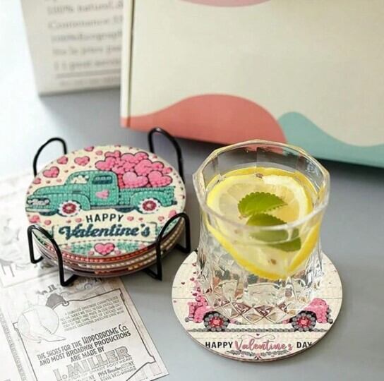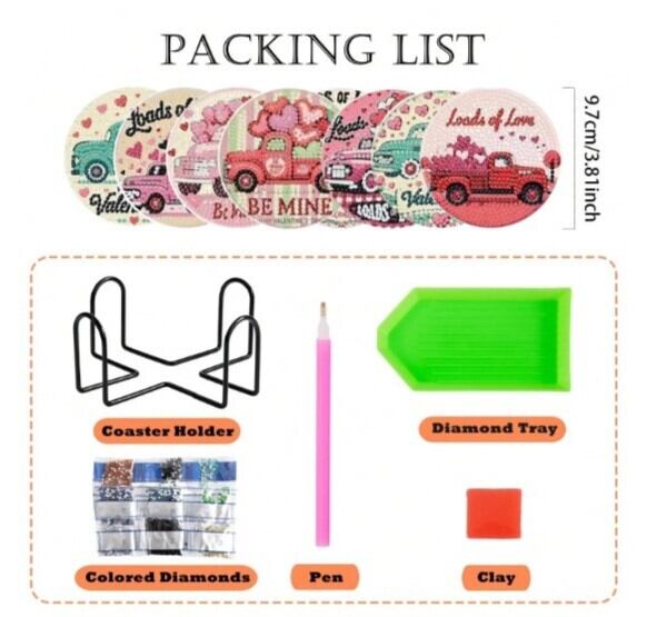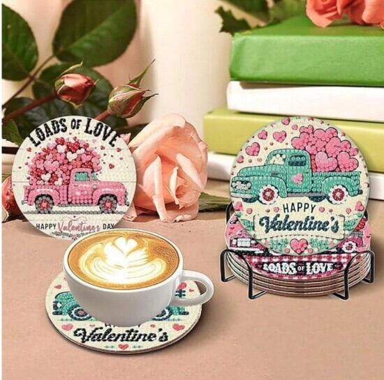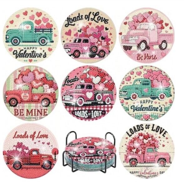 【diamond painting art】8 pieces Valentine's Day Pattern Coaster Set With holder p00007-1009 | MIIEDIYFOX × K.Fam51