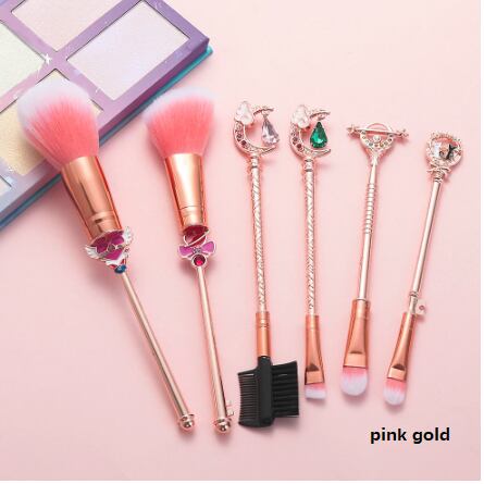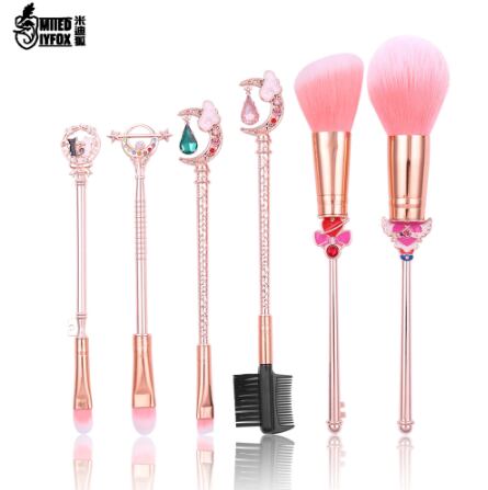 6pcs 2色セーラームーンメイクブラシセットブラシセットプロブレンド粉末赤面アイシャドウの眉毛とクリスタル化粧品美容メイクアップツール