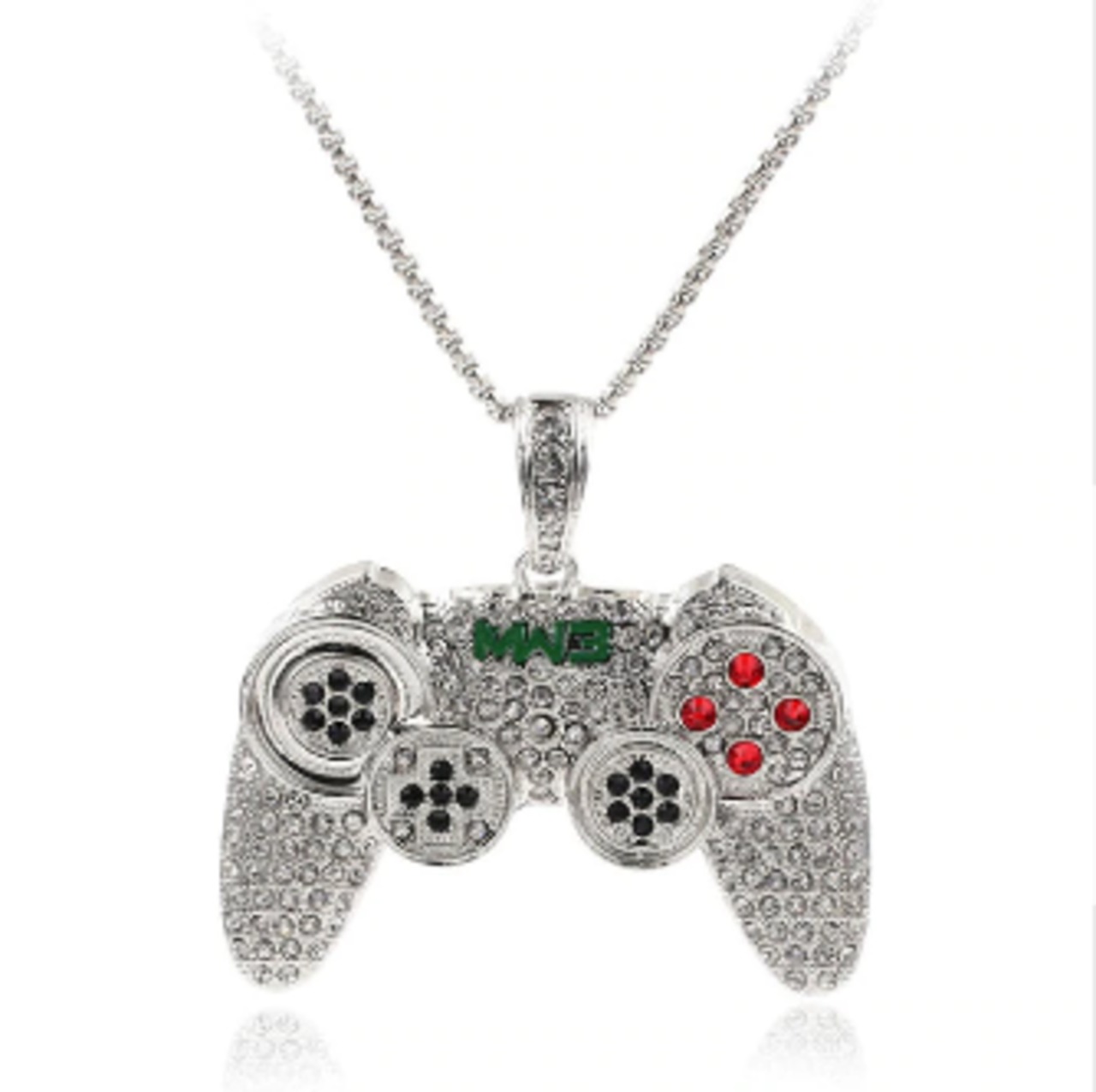 Hip Hop Game Machine Handle Necklace Pendant Mens Full Crystal Long Chain Necklace Fashion Game Controller Necklace Jewelry