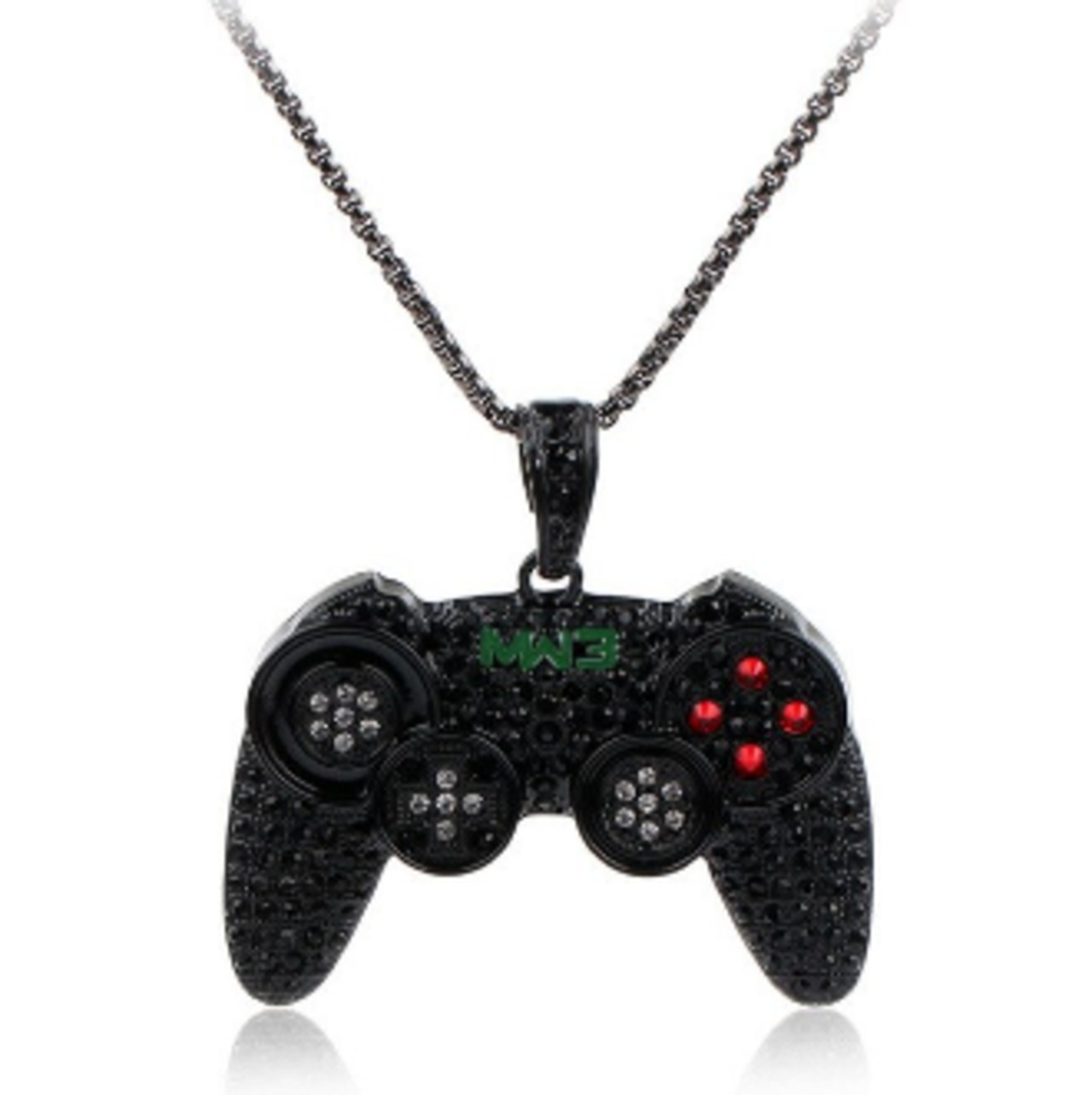 ヒップホップゲーム機ハンドルネックレスペンダントメンズフルクリスタルロングチェーンネックレスファッションゲームコントローラネックレスジュエリー