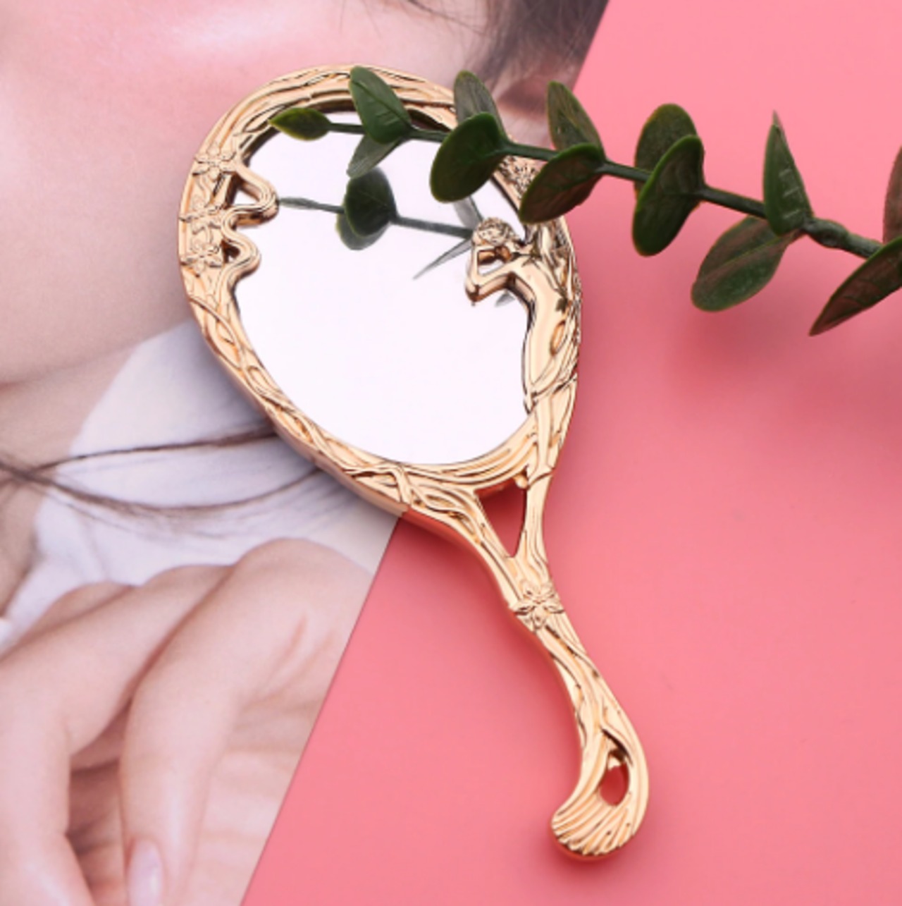 Sailor Moon Makeup Hand Vanity Mirror Princess Mini Make-up Blue Crystal Mirror Symbol Makeup Hand Mirror Gift with Pink Bag