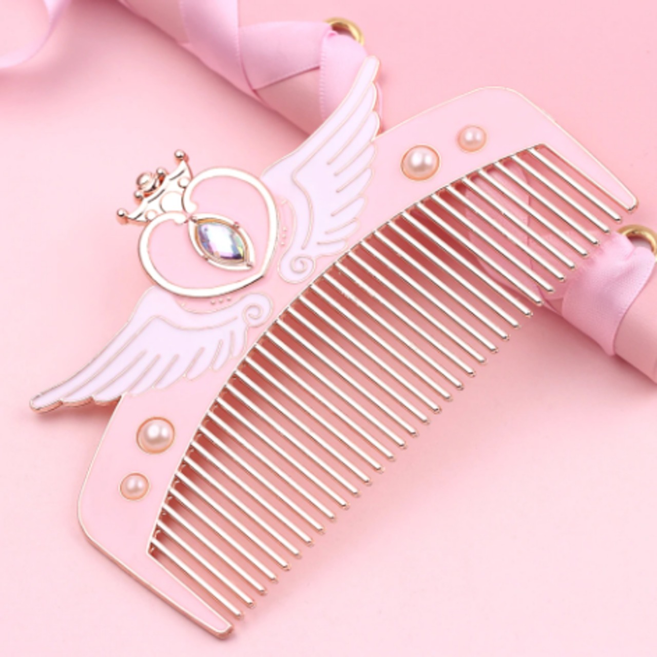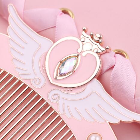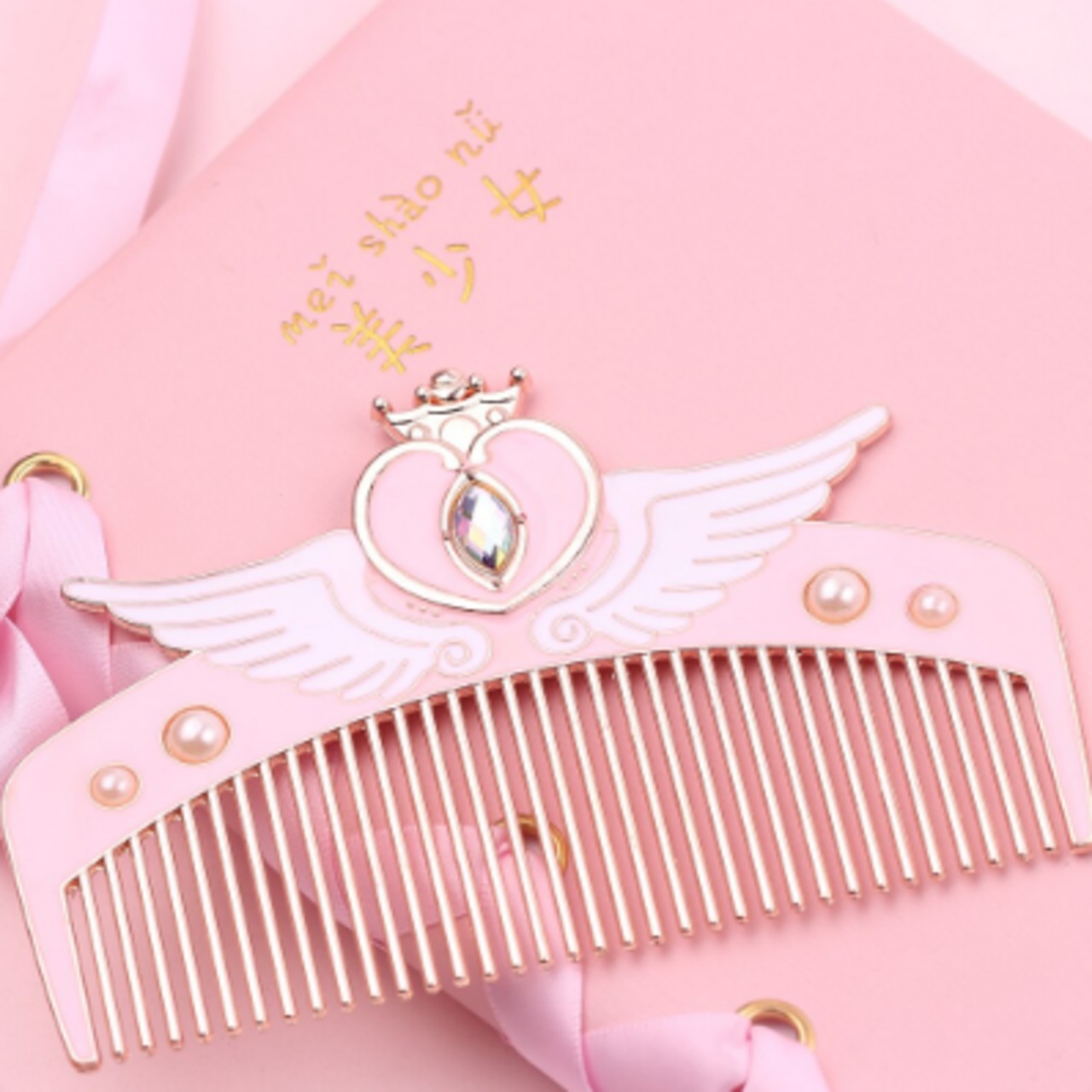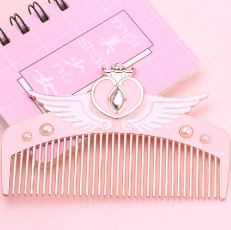 Cute Pink Sailor Moon Makeup Comb for Lady Girl Metal Hair Comb with Crystal Wing/Heart Shape Gueen Comb Top Quality Best Gift