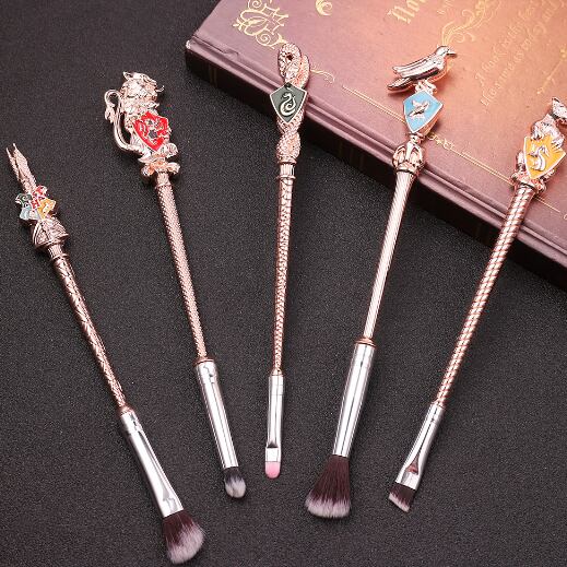 5pcs Magic School Makeup Brush Set Angle Brush Eye Shadow Detail Brush Hogwarts Castle Gryffindor Badge Pinceaux Macchiage