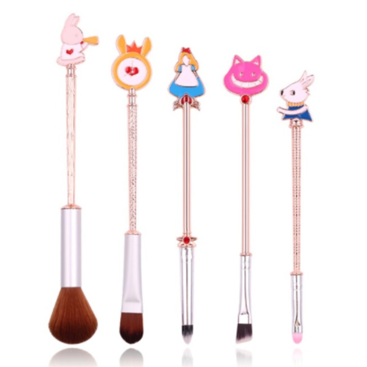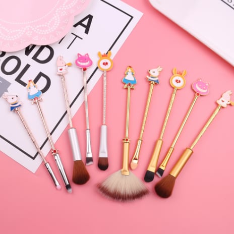 Wonderland Makeup Brush Set with 2 Color Alice Cute Rabbit Cat Cosmetic Tool Eyeshadow Lip Blend Makeup Brush Tool Kit