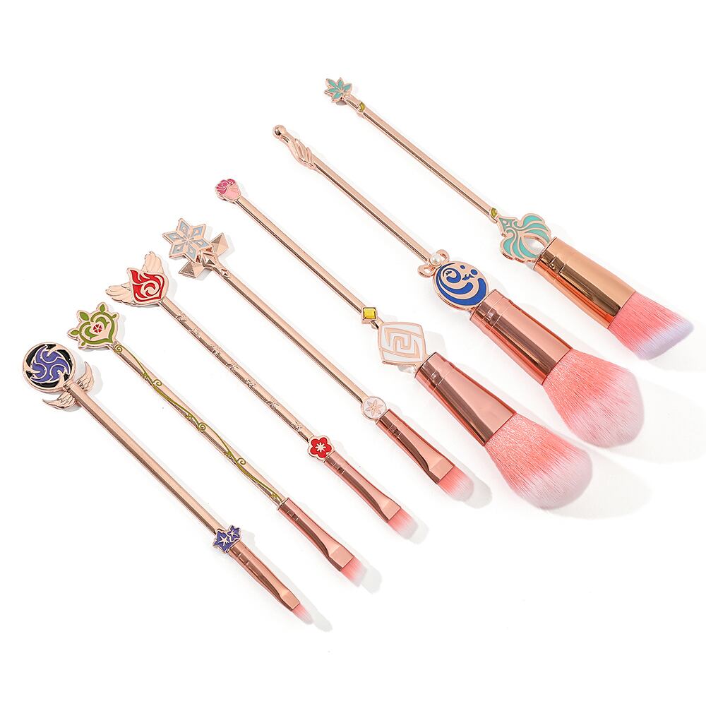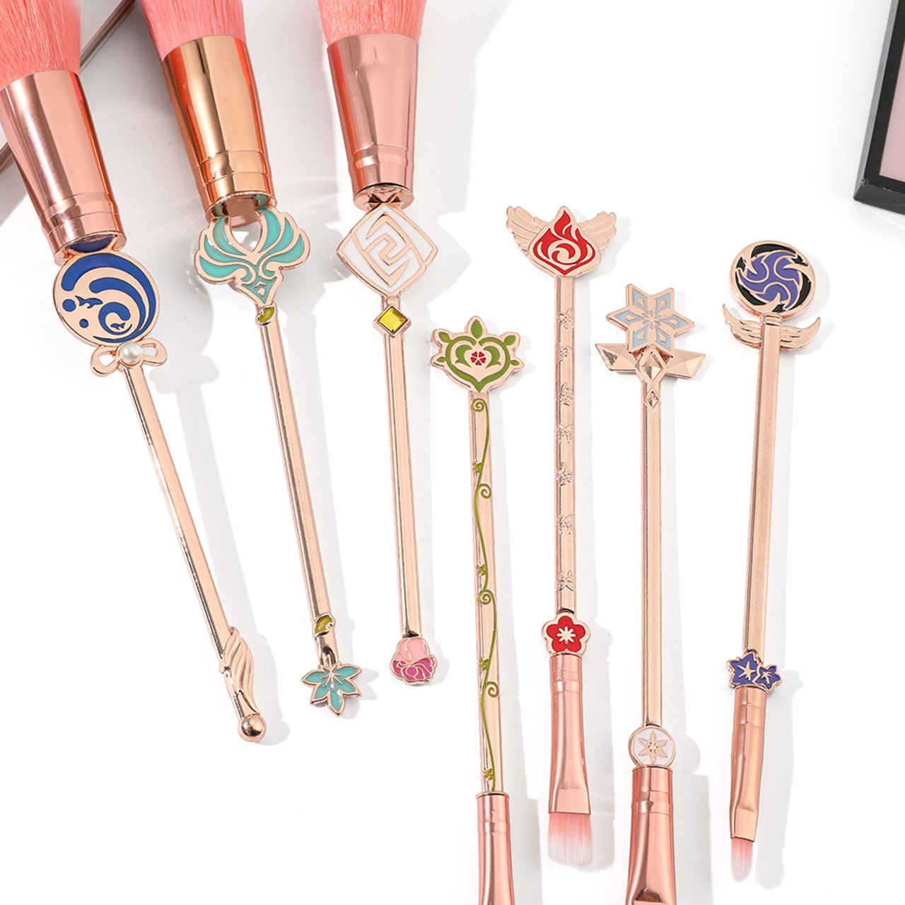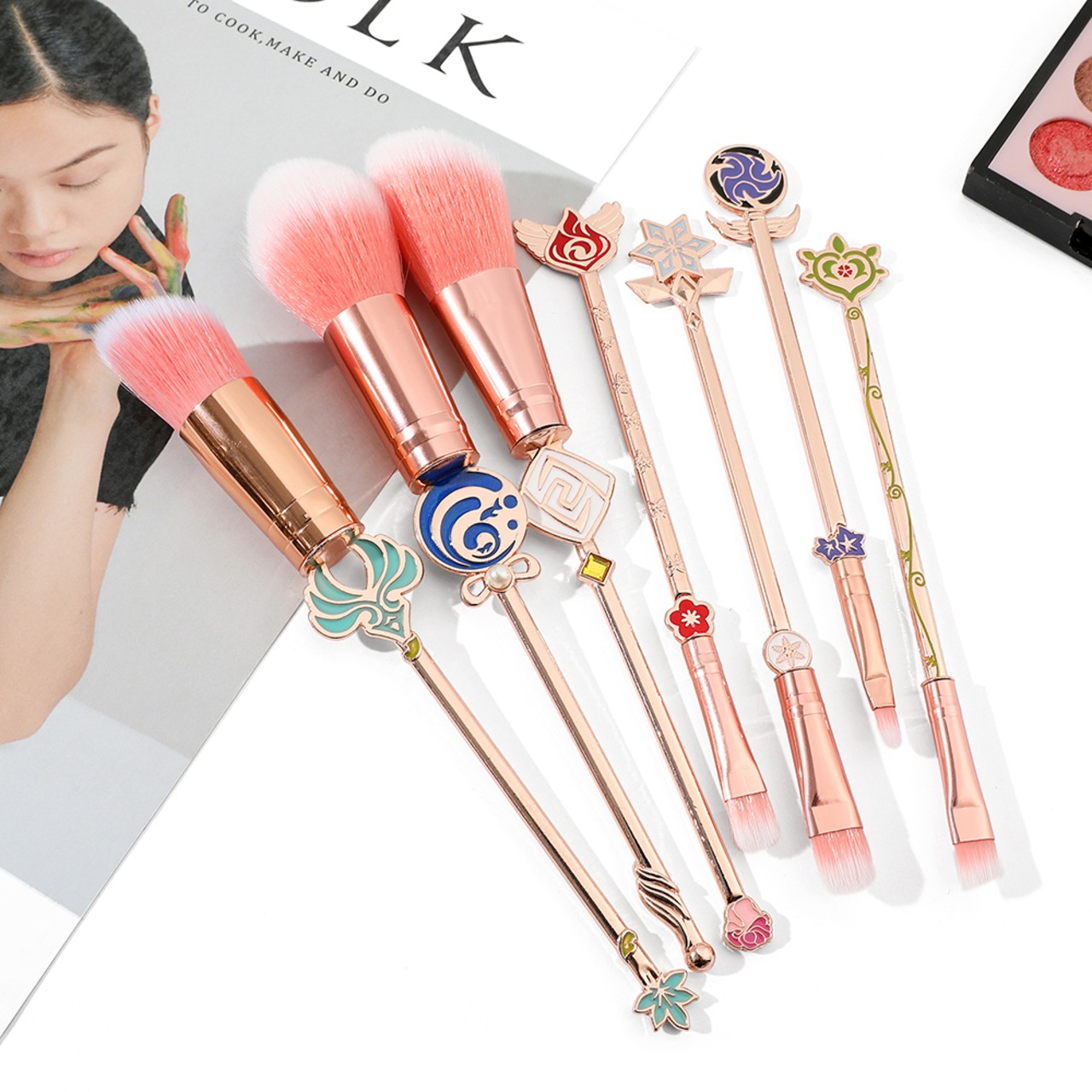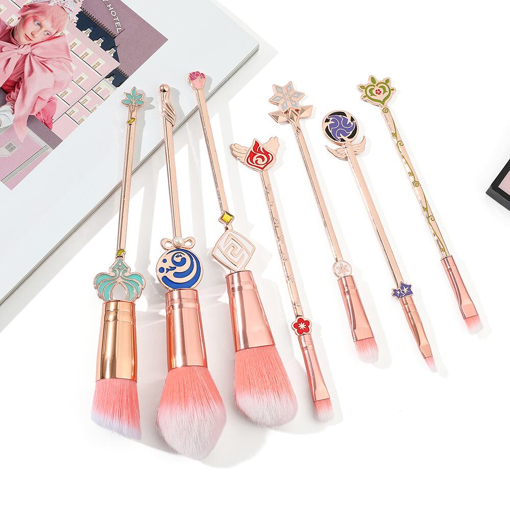 3D Shin Impact Vision Makeup Brush Set, Professional Face Mask, Soft Blush Brush, Eyeshadow, Kabuki Brush with Storage Bag