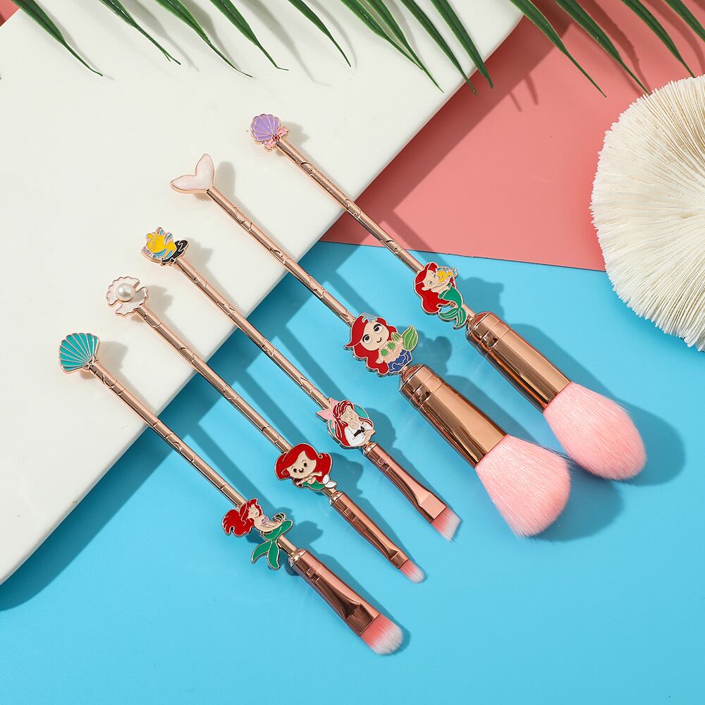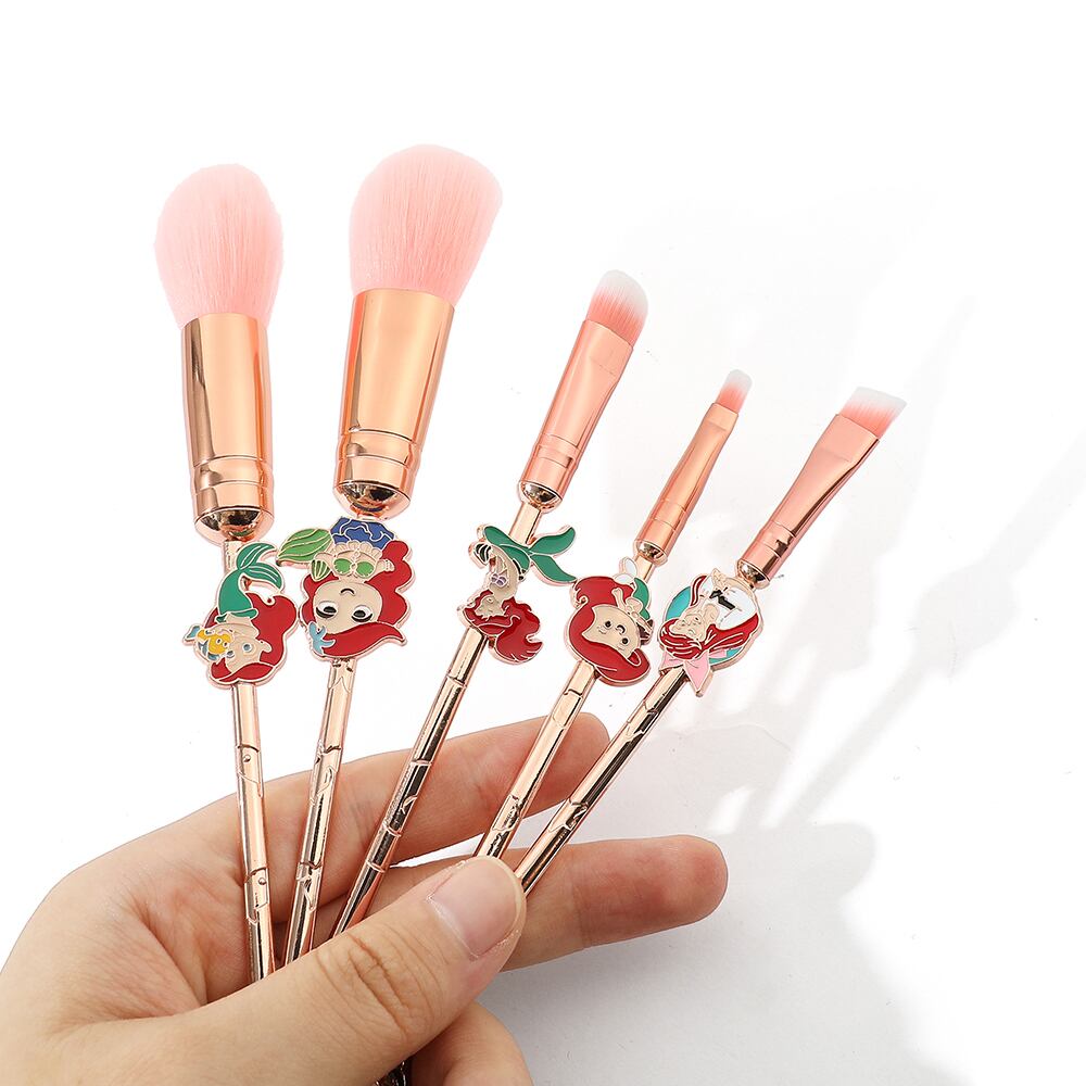 5pcs リトルマーメイド メイクブラシセット ローズゴールデンハンドルパワー